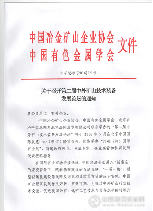 關(guān)于召開第二屆中外礦山技術(shù)裝備發(fā)展論壇通知