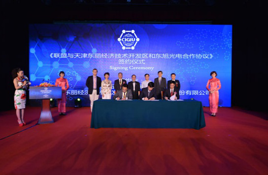 在簽約儀式環(huán)節(jié),中國(guó)國(guó)際石墨烯資源產(chǎn)業(yè)聯(lián)盟與多家機(jī)構(gòu)達(dá)成戰(zhàn)略合作,包含石墨烯產(chǎn)業(yè)基金方面和石墨烯應(yīng)用技術(shù)方面。聯(lián)盟與天津東麗經(jīng)濟(jì)技術(shù)開(kāi)發(fā)區(qū)管委會(huì)、東旭光電科技股份有限公司簽署了《聯(lián)盟落地及設(shè)立烯盟(東旭.天津)石墨烯產(chǎn)業(yè)基金合作協(xié)議》;豐域烯碳集團(tuán)、天津大學(xué)科學(xué)技術(shù)發(fā)展研究院、廣州烯盟投資基金管理有限公司簽署了《石墨烯應(yīng)用技術(shù)研究戰(zhàn)略合作協(xié)議》。