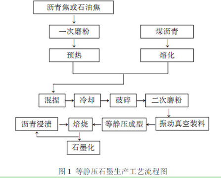 如圖1所示,為等靜壓石墨的傳統(tǒng)生產(chǎn)工藝流程。