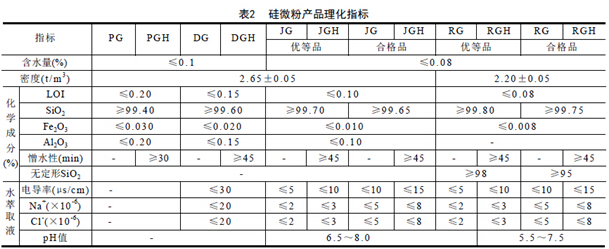 1.2 幾種主要用途硅微粉的理化指標(biāo)