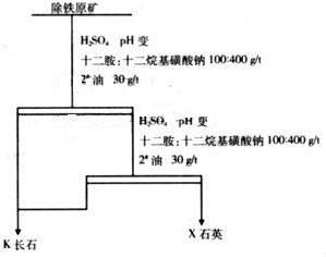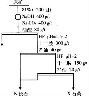 2)采用中性條件,一般的酸法與堿法都不能進(jìn)行石英-長(zhǎng)石的有效分離,得不到合格的長(zhǎng)石、石英精礦產(chǎn)品。