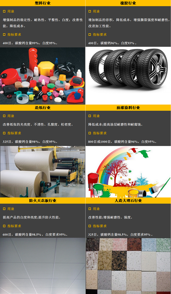 圖1 重質(zhì)碳酸鈣的應(yīng)用領(lǐng)域