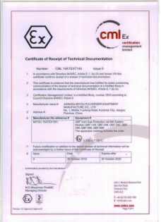 國(guó)內(nèi)同行業(yè)中第一家通過ATEX歐洲防爆認(rèn)證。與東北大學(xué)工業(yè)爆炸及防護(hù)研究所、德國(guó)(FSA)系統(tǒng)安全及工業(yè)醫(yī)學(xué)研究中心共同深度研究合作,成立研究所。正在申報(bào)國(guó)家標(biāo)準(zhǔn)。