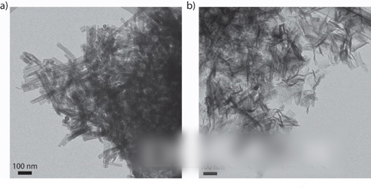 碳納米棒(a)和石墨烯納米帶(b)的透射電子顯微鏡圖像