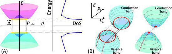 雙層石墨烯能帶的形狀,很像是“墨西哥帽”,而不是大多數(shù)半導(dǎo)體生產(chǎn)所運(yùn)用的“拋物線狀”。其意義是,“帽子”邊沿的電子密度似乎趨近于無(wú)窮大(又稱van Hove singularity/“范霍夫奇點(diǎn)”)。