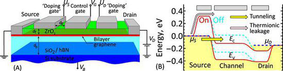 上圖為石墨烯雙分子層的一種布局(TFET/隧道場(chǎng)效應(yīng)晶體管)