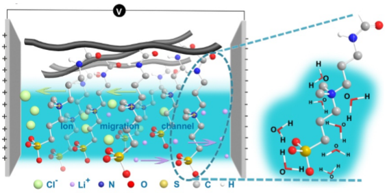 面對日益增長的能源需求,全固態(tài)超級電容器作為新型儲能設備得到了廣泛關注,而凝膠電解質(zhì)是其中的關鍵技術(shù)材料。為了實現(xiàn)全固態(tài)超級電容器快速充放電和高穩(wěn)定性的需求,發(fā)展兼具高離子電導率、優(yōu)良機械強度和保水性能等諸多優(yōu)勢的新型凝膠電解質(zhì),是當前該領域的重要科學問題。其核心和關鍵在于如何在凝膠電解質(zhì)中構(gòu)建有序離子通道以及理解其內(nèi)在電化學機制。
