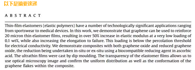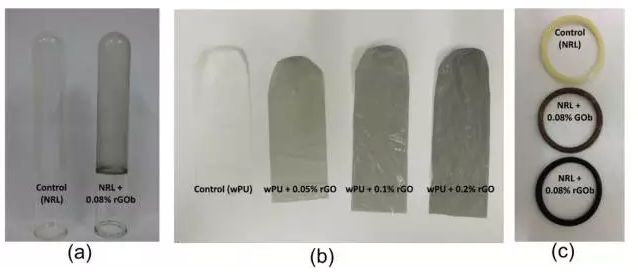 他們分別使用不同種類和不同含量的石墨烯改性天然橡膠及PU彈性體材料,制備出如避孕套形狀的薄膜材料。通過測(cè)試發(fā)現(xiàn),只需少量的石墨烯就能大大地提高橡膠薄膜材料的強(qiáng)度和彈性,比如使用質(zhì)量分?jǐn)?shù)千分之一的石墨烯使薄膜材料彈性模量可以提高 50% 。