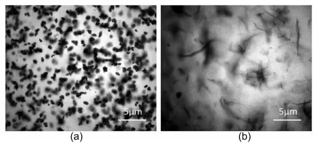 天然乳膠(natural rubber latex,NRL)的透明性很好,透過光學(xué)電鏡我們可以看見,石墨烯十分均勻的分散在NRL基體中。