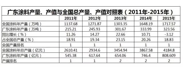一、廣東省涂料行業(yè)十二五發(fā)展情況: