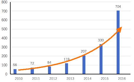 圖2每年新增石墨烯企業(yè)數(shù)量情況