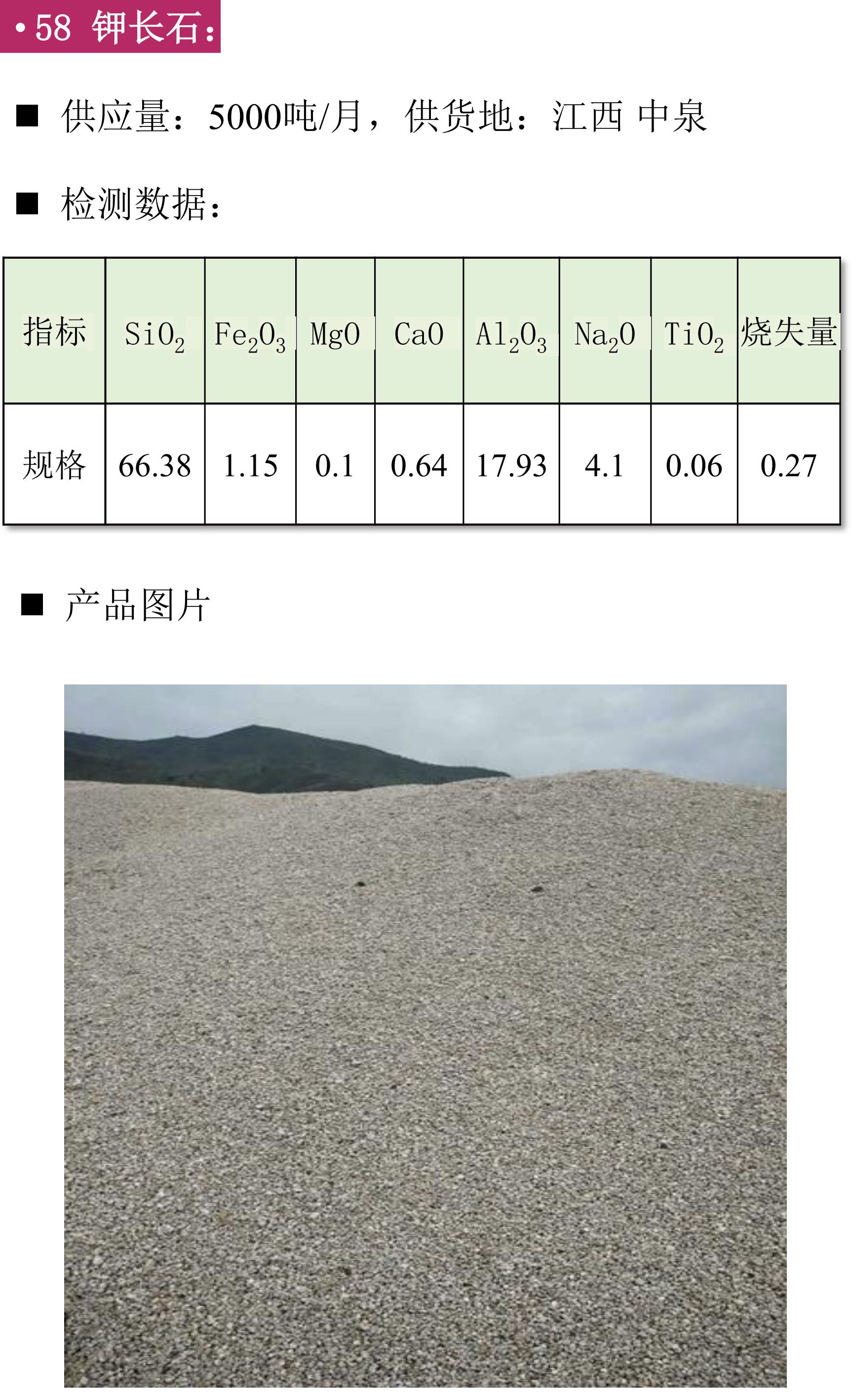 河南南陽(yáng)天江礦業(yè)有限公司鉀長(zhǎng)石行情報(bào)價(jià)