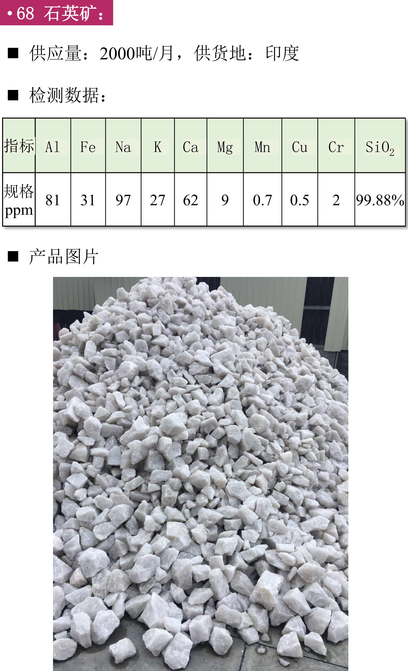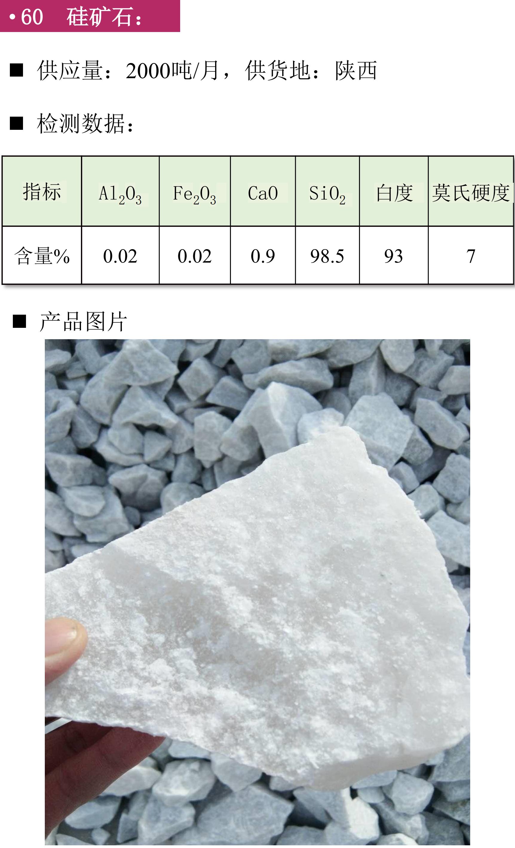 “找現(xiàn)貨”今天為大家?guī)?lái)最新兩期(第5期、第6期)精彩現(xiàn)貨集錦,匯總了非金屬礦物粉體中的石英砂、硅微粉、葉蠟石、碳化硅、高嶺土、滑石、白云石、硅灰石等諸多現(xiàn)貨供應(yīng)信息,往期信息請(qǐng)?jiān)谖恼碌撞奎c(diǎn)擊鏈接查看,詳情請(qǐng)電話咨詢(xún)(01082946450或15311499522)!