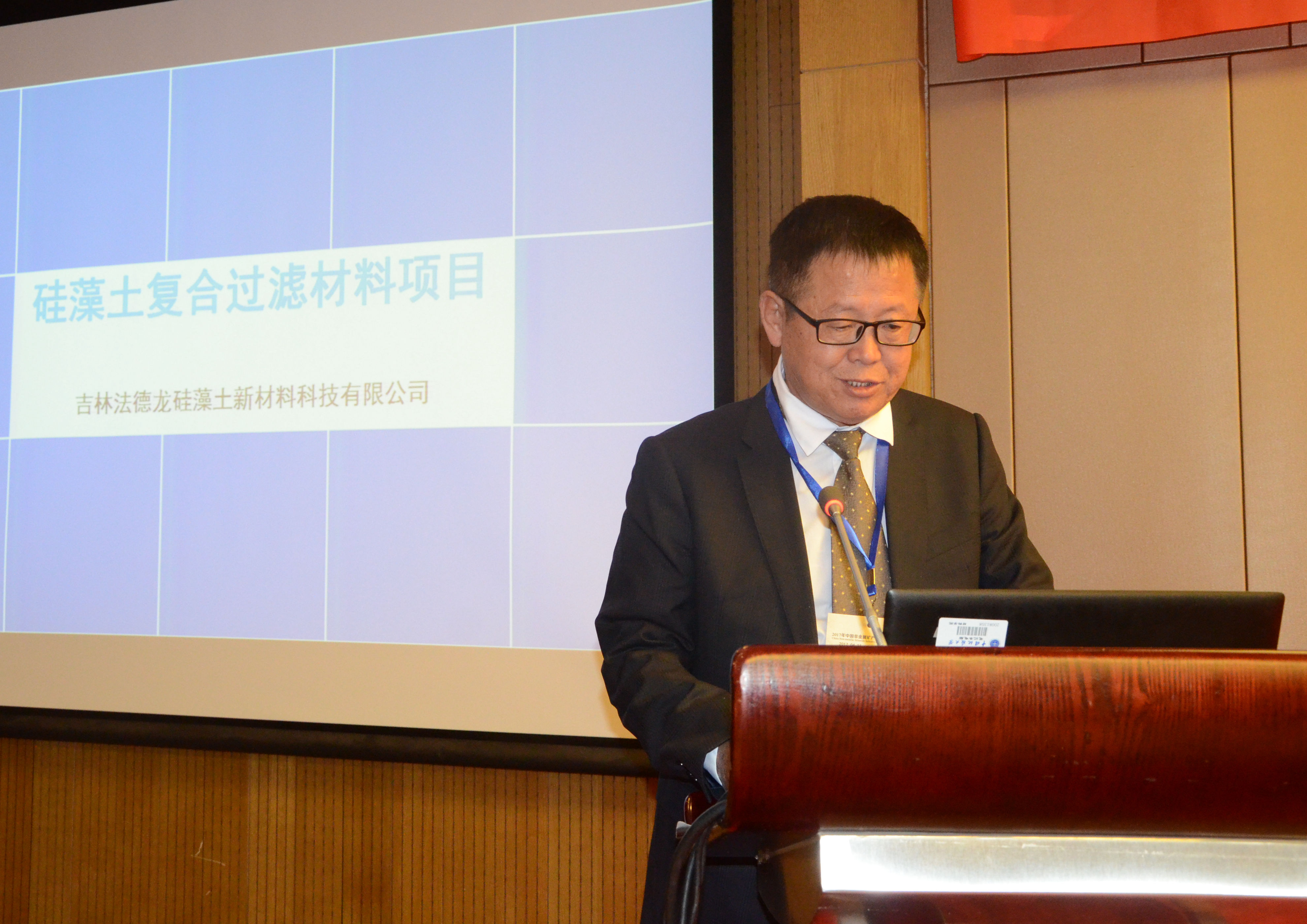 吉林法德龍硅藻土新材料科技有限公司總經(jīng)理刁廣祥進(jìn)行“硅藻土復(fù)合過(guò)濾材料、硅藻無(wú)紡布項(xiàng)目”路演