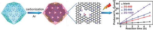 近期,南開大學程鵬和師唯團隊利用金屬-有機框架(MOF)作為前驅(qū)體采用一步煅燒法制備了氮摻雜石墨烯類似物(ZNGs)用于高效光催化析氫。由于前驅(qū)體ZIF-8含有高含量的氮元素,最終產(chǎn)物ZNGs也具有較高的氮含量(9-15%)并且保持了前驅(qū)體的多面體形貌。通過簡單控制煅燒溫度就能調(diào)控ZNGs中氮元素的總含量和多種氮元素種類(吡咯氮、吡啶氮、石墨氮)之間的相對含量進而優(yōu)化出最佳的析氫活性。