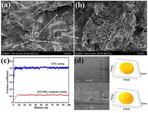 中國科學(xué)院蘭州化學(xué)物理研究所研究員周惠娣課題組長期致力于熱噴涂陶瓷基涂層工藝和性能的研究。最近,該課題組利用涂層本身具有的內(nèi)部微觀孔隙或裂紋,通過水熱反應(yīng)法,在這些孔隙和裂紋內(nèi)部原位生長出具有潤滑特性的納米片狀MoS2。