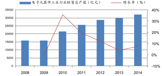 2008-2014年我國電子元器件工業(yè)銷售總產(chǎn)值