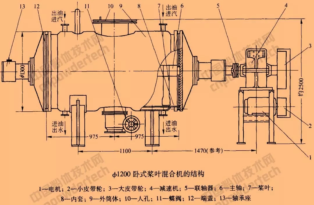 臥式槳葉混合機(jī)是一種以臥式筒體和單軸多槳為結(jié)構(gòu)特點(diǎn)的間歇式粉體表面改性機(jī),主要由傳動(dòng)機(jī)構(gòu)、主軸、筒體、端蓋等組成。