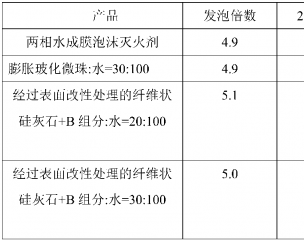 本發(fā)明改性硅灰石滅火劑包括:60~100質(zhì)量份的組分A、2~8質(zhì)量份的組分B和3~12質(zhì)量份的組分C,組分A為纖維狀硅灰石,組份B為非離子氟碳表面活性劑、有機硅表面活性劑和碳氫表面活性劑中的一種或幾種混合物,組份C為陰離子表面活性劑、陽離子表面活性劑和非離子表面活性劑中的一種或幾種混合物,將上述組分A放在含有上述組分C的水溶液中浸泡10~12小時,然后將上述組分A和含有上述組分C的水溶液在磁力攪拌器中攪拌30分鐘,再將上述組分A在含有上述組分C的水溶液中浸泡10~12小時后,抽濾,最后將纖維狀硅灰石在60℃左右的溫度下烘干48小時,本滅火劑能夠形成穩(wěn)定的堅固隔離層,封閉性極好,抗復(fù)燃能力極強。