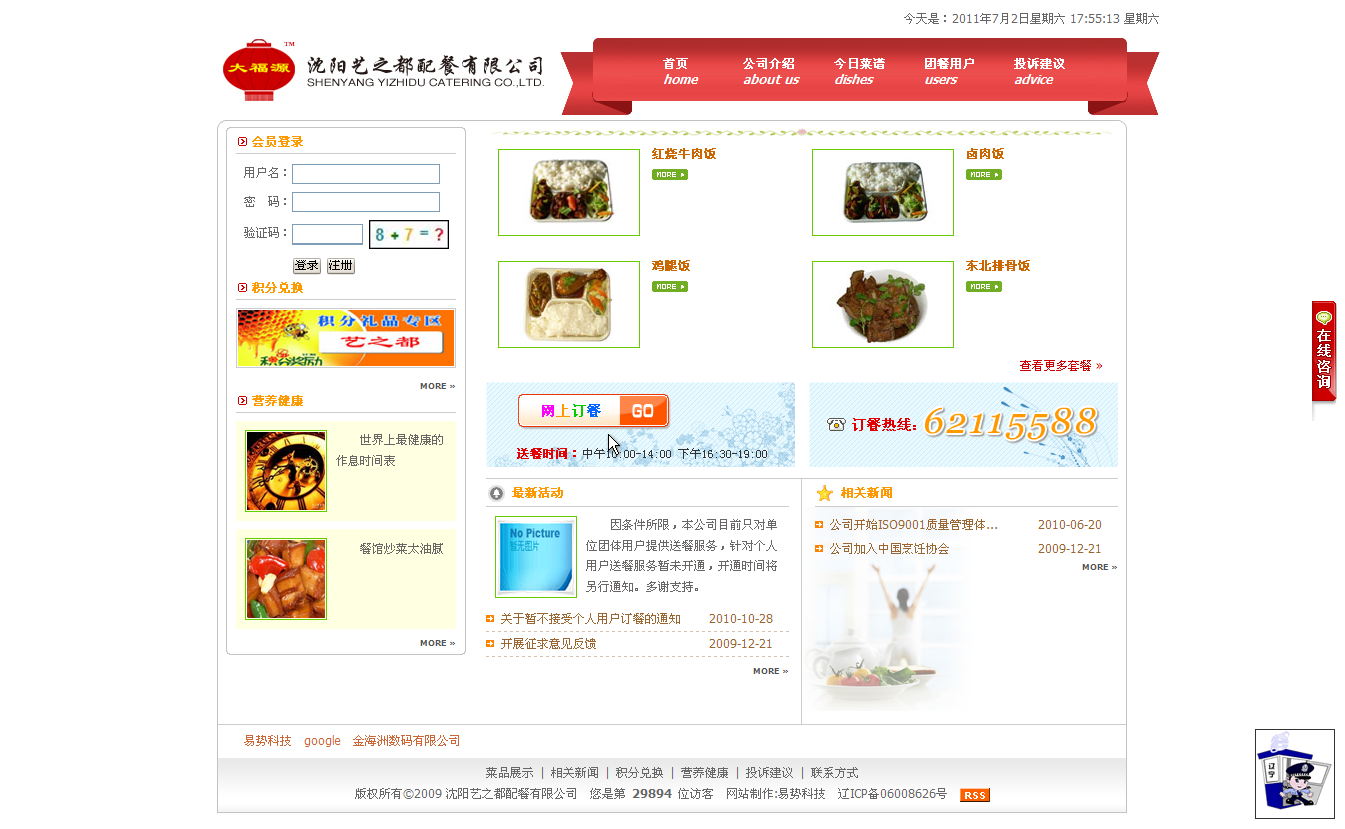 網(wǎng)站簡介: 沈陽藝之都營養(yǎng)配餐有限公司網(wǎng)站頁面簡潔大方,網(wǎng)站包括網(wǎng)上訂餐,積分兌換等功能。
