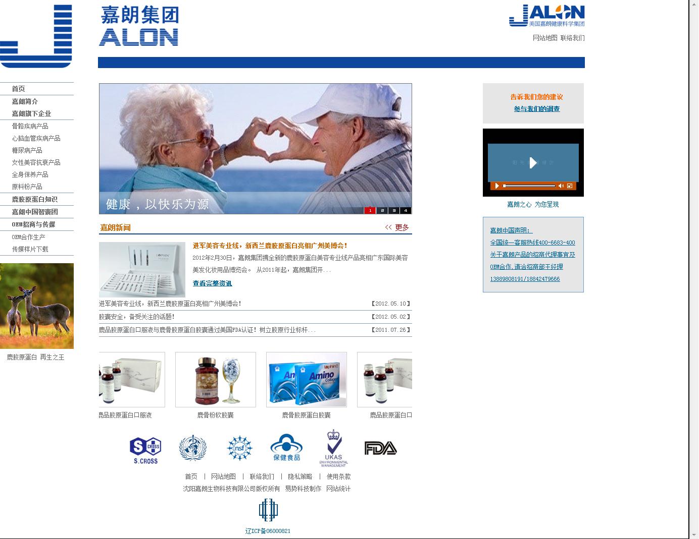 網(wǎng)站簡介: 嘉朗集團(tuán)是一家專注于鹿膠原蛋白產(chǎn)品研究、開發(fā)、生產(chǎn)和銷售的國際知名高科技健康企業(yè)。致力于研發(fā)最接近人體、且唯一具有再生能力的的膠原蛋白——鹿膠原蛋白,并針對不同的醫(yī)療領(lǐng)域,研發(fā)出多種營養(yǎng)品,滿足不同人群的健康需求。嘉朗集團(tuán)的網(wǎng)站主要有13個板塊,支持信息發(fā)布、在線視頻、在線下載等功能。網(wǎng)站首頁以圖片跑馬燈的形式介紹了嘉朗集團(tuán)的產(chǎn)品,點(diǎn)擊進(jìn)入即有圖文介紹,是瀏覽網(wǎng)站的用戶對企業(yè)的產(chǎn)品有更加準(zhǔn)確、直觀的了解。公司主要通過嘉朗新聞板塊更新該行業(yè)最新資訊和公司的動態(tài)。另外,網(wǎng)站首頁有嘉朗的視頻,您可以通過視頻對公司更加了解。