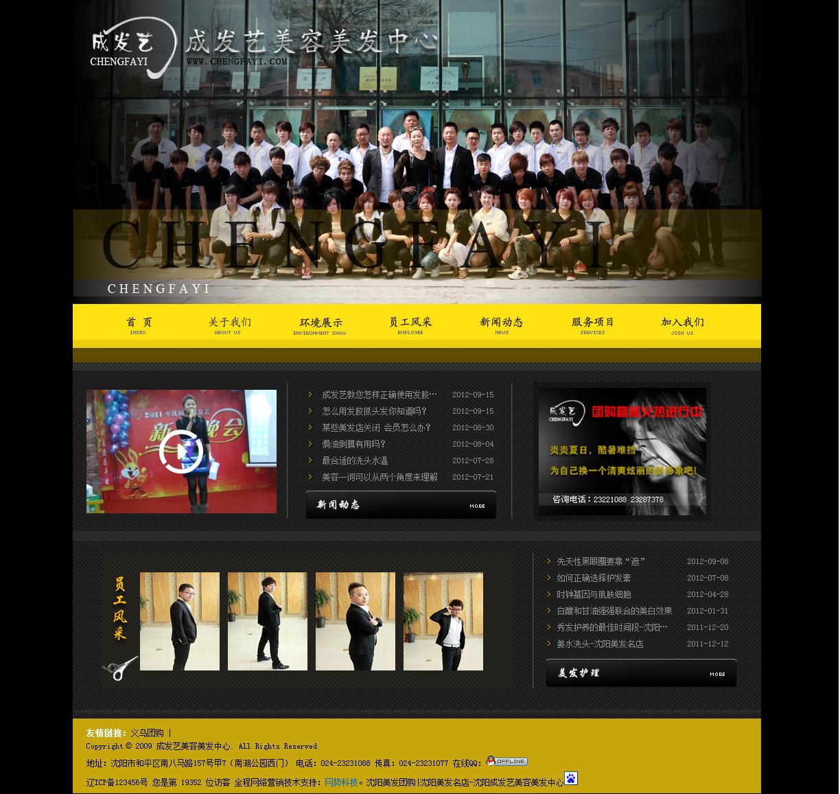 網(wǎng)站簡(jiǎn)介: 沈陽(yáng)成發(fā)藝美容美發(fā)中心成立于1998年,是一家集美容美發(fā)為一體的大型美容美發(fā)企業(yè)。該企業(yè)擁有自己的管理教育機(jī)構(gòu),以及技術(shù)教育培訓(xùn)及產(chǎn)品推廣服務(wù)為中心的實(shí)體。該企業(yè)憑借獨(dú)特和先進(jìn)的經(jīng)營(yíng)管理模式,在遼寧省創(chuàng)造了一個(gè)又一個(gè)的奇跡。沈陽(yáng)成發(fā)藝美容美發(fā)中心的網(wǎng)站主要有6個(gè)板塊,支持在線視頻、信息發(fā)布、員工風(fēng)采等功能。網(wǎng)站首頁(yè)有企業(yè)的在線視頻,可以通過(guò)視頻對(duì)企業(yè)的服務(wù)項(xiàng)目、企業(yè)文化有更加深入的了解。企業(yè)主要通過(guò)新聞動(dòng)態(tài)板塊更新該行業(yè)相關(guān)資訊和公司的最新動(dòng)態(tài),瀏覽網(wǎng)站的用戶也可以通過(guò)此板塊了解一些美容美發(fā)常識(shí)。而員工風(fēng)采板塊對(duì)公司的員工進(jìn)行了介紹,讓瀏覽網(wǎng)站的用戶會(huì)公司的人員有所了解,從而選擇適合自己的美容美發(fā)師。