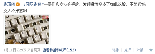 這點(diǎn)在內(nèi)容分析上已經(jīng)提過,但這里再次重復(fù),因?yàn)楣P者認(rèn)為這點(diǎn)非常重要。八卦、笑話的內(nèi)容也很受大眾用戶歡迎,在粉絲、轉(zhuǎn)發(fā)、評論這些數(shù)據(jù)上也必定有不錯的成效。但這樣圈來的用戶并不是你的潛在用戶,而且也會影響你現(xiàn)有用戶對你的定位和觀感,因此趣玩網(wǎng)逐步放棄了這方面的內(nèi)容,而采用更辛苦的采編模式。