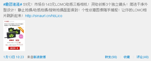 #趣團(tuán)速遞#是趣玩網(wǎng)的團(tuán)購產(chǎn)品,帶有一定的優(yōu)惠性質(zhì),尤其對于粉絲來說,因此就無需額外再多做什么就能獲得較好的效果,此微博和團(tuán)購?fù)?,也是每天一條,時間點(diǎn)集中在10:00-11:00之間,也是微博每天的第一個高峰期。