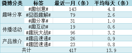 傳播活動類:#趣互動#兩天1條、#趣玩大戰(zhàn)#每天1個活動,3條微博