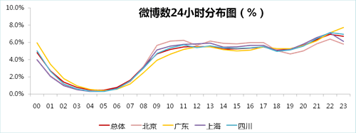 對比新浪的統(tǒng)計數(shù)據(jù),可以看出趣玩網(wǎng)的微博發(fā)布時間基本和幾個高峰期相對應(yīng),尤其是已經(jīng)屬于下班時間的21:00-22:00也是微博工作人員的重要發(fā)布點(diǎn)。