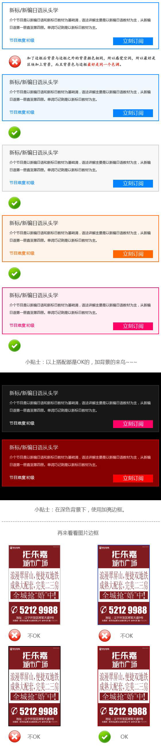 ![]() 最后總結(jié): 1) 當(dāng)你不知道邊框要用什么顏色的時(shí)候,就用和背景相似的色系。 2) 當(dāng)遇到深色背景的時(shí)候,使用亮色邊框。 3)當(dāng)圖片顏色很豐富的時(shí)候,用顏色最多的那個(gè)顏色做為邊框的選用色系。 哈哈,掌握了嘛?不是很復(fù)雜吧,其實(shí)一切就是這么的“煎蛋”~~!希望有更多的“射雞師”們和我們互動(dòng)哦,再見~^-^.
