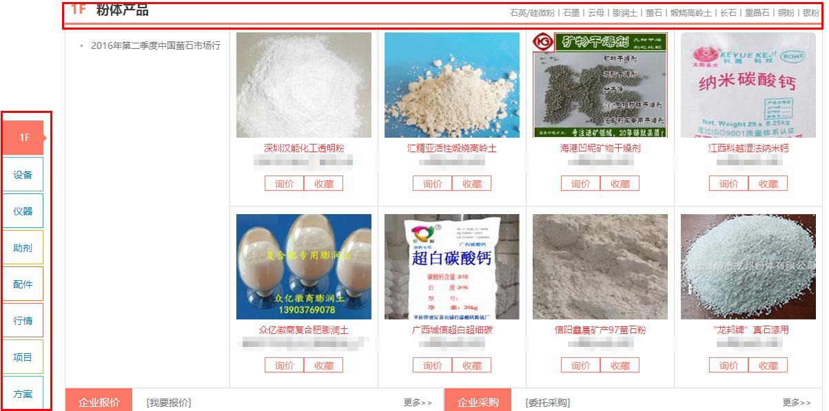 2.分類找貨:在“粉體市場”欄目“全部商品分類”中,找到您需要的產(chǎn)品分類,或在商品分類展示中瀏覽您需要的商品。