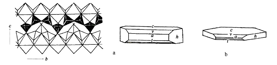低溫變體中,[CaO6]八面體共棱聯(lián)結(jié)或平行b軸的鏈,與由雙四面體和單四面體交互排列的[Si3O9]∞單鏈硅氧骨干相配合(圖1)。[CaO6]八面體的棱長(zhǎng)為0.365nm,[Si2O7]雙四面體長(zhǎng)約為0.41-0.42nm。