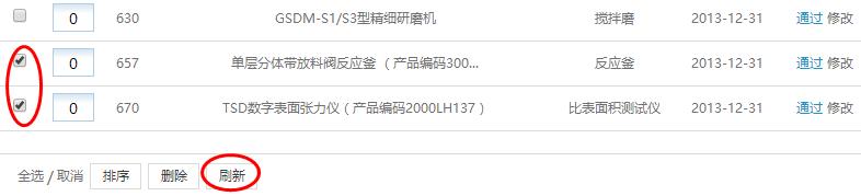 2.勾選需要排名靠前的產(chǎn)品,點(diǎn)擊“刷新”,如下圖紅圈所示,您勾選的產(chǎn)品就排到同類產(chǎn)品的前面了。