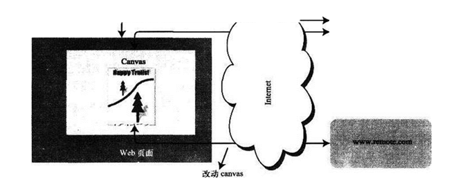 如下圖所示,如果來自http://www.example.com的頁面包含canvas元素,那么頁面中的 代碼完全有可能在canvas里面呈現(xiàn)來自http://www.remotexom的圖片。畢竟在任何Web頁面中 顯示其他遠程網(wǎng)站的圖片都是完全可接受的。